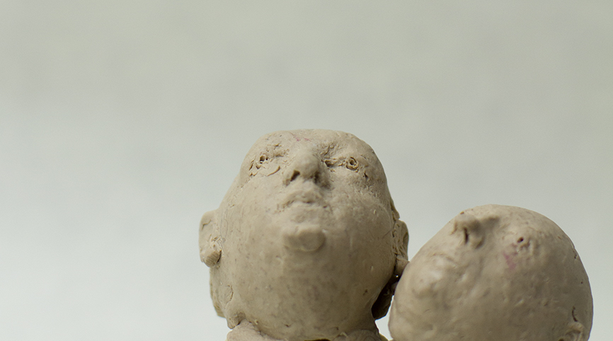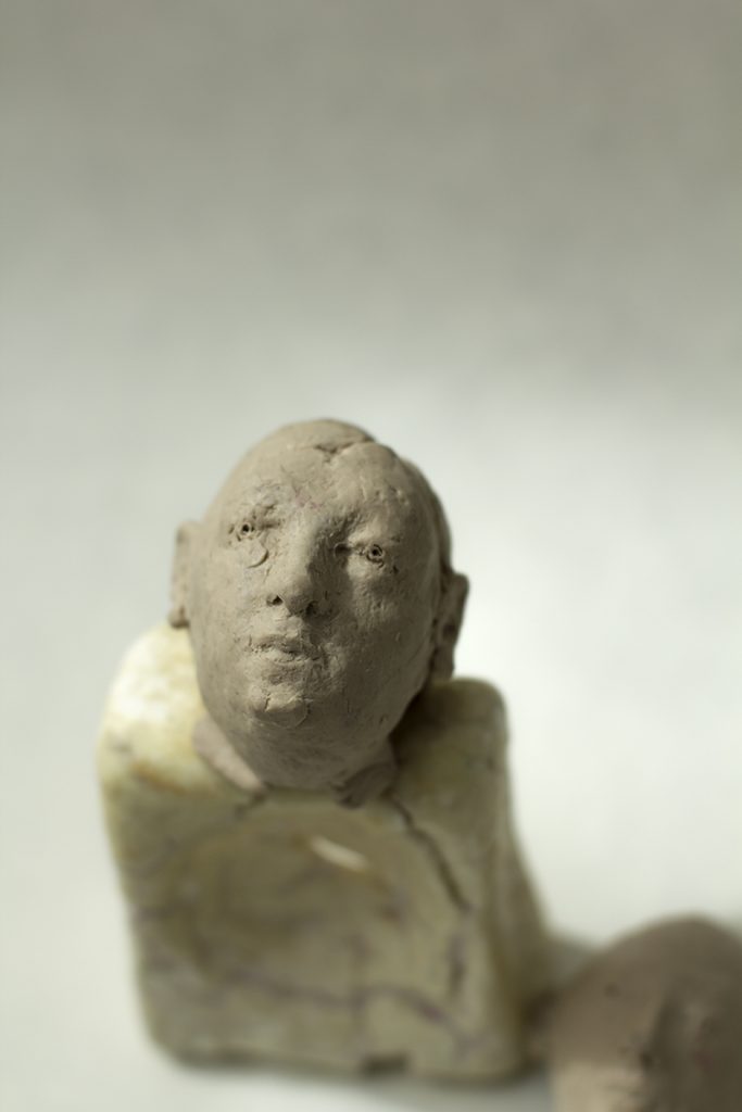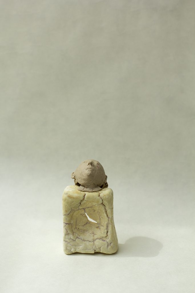 El observatorio, 2018. Detail. Terracotta, soap and bronze. Installation variable dimension. Size of each carácter around 6 x 3,5 x 3 cm.